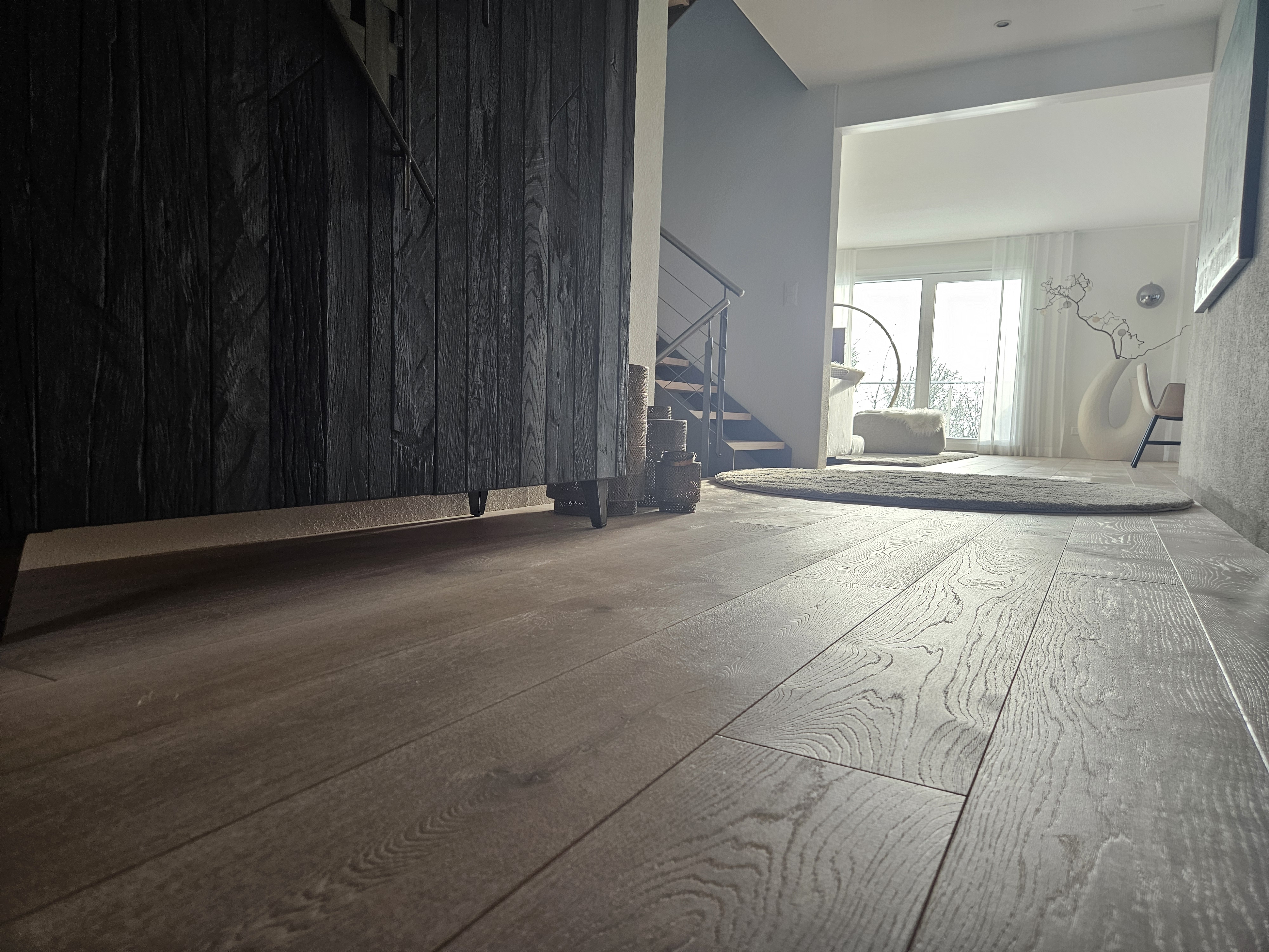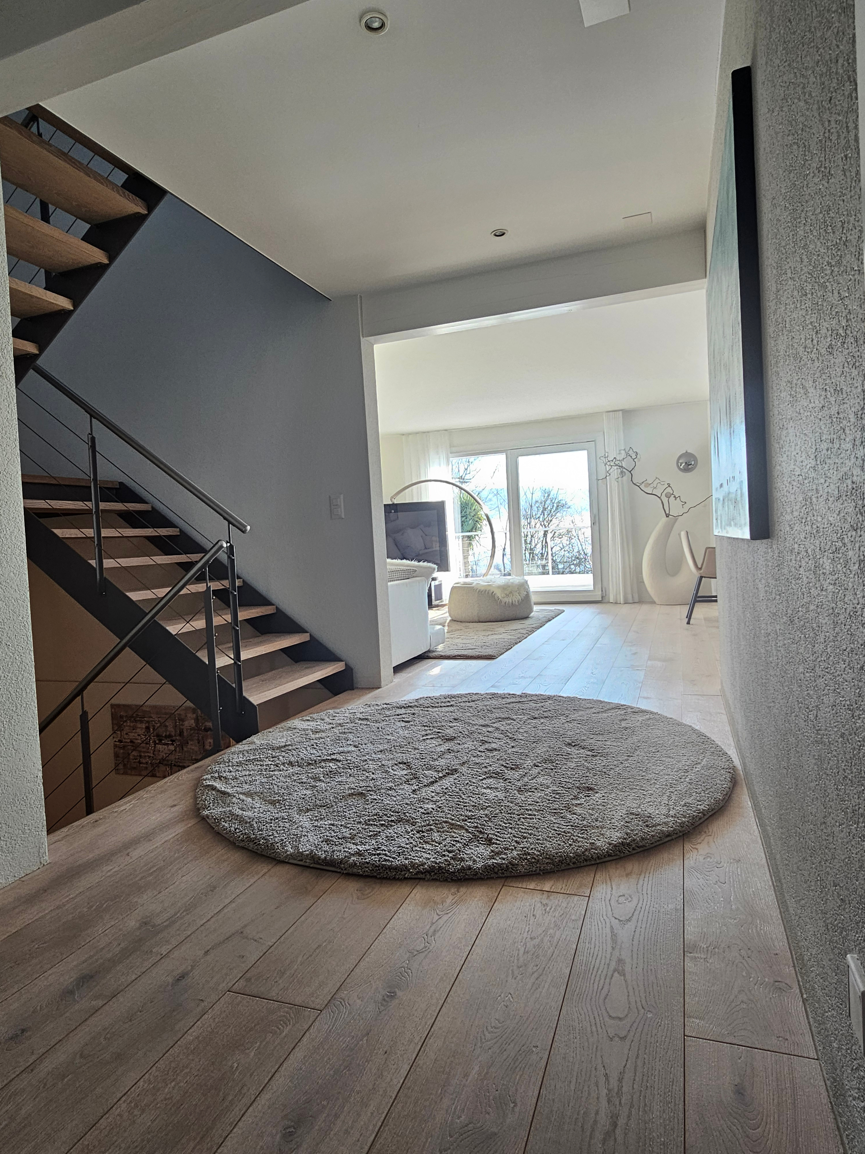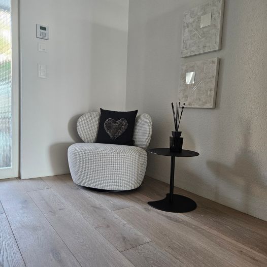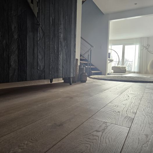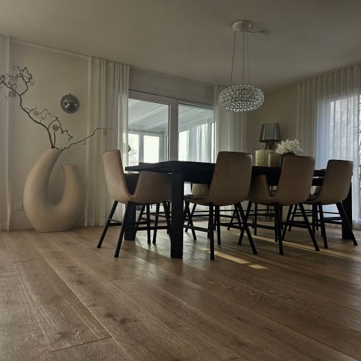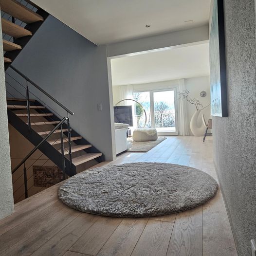 Das Einfamilienhaus in Hägendorf wurde Renoviert. Es wurde ein Plattenbelag abgespitzt und ein neuer Parkettboden eingebaut. Auf zwei Treppenläufen haben wir Massivholztritte und Podeste passend zum Parkett ersetzt. Der gebürstete und weissgeölte Parkett ist fugenlos eingebaut und verleiht diesem Zuhause ein Ambiente, dass zum verweilen einlädt. Als Wandabschluss wurde nicht wie gewöhnlich mit Fussleisten gearbeitet, sonder mit einer feinen Dichtstoffuge, passend in der Farbe zum Bodenbelag abgeschlossen.