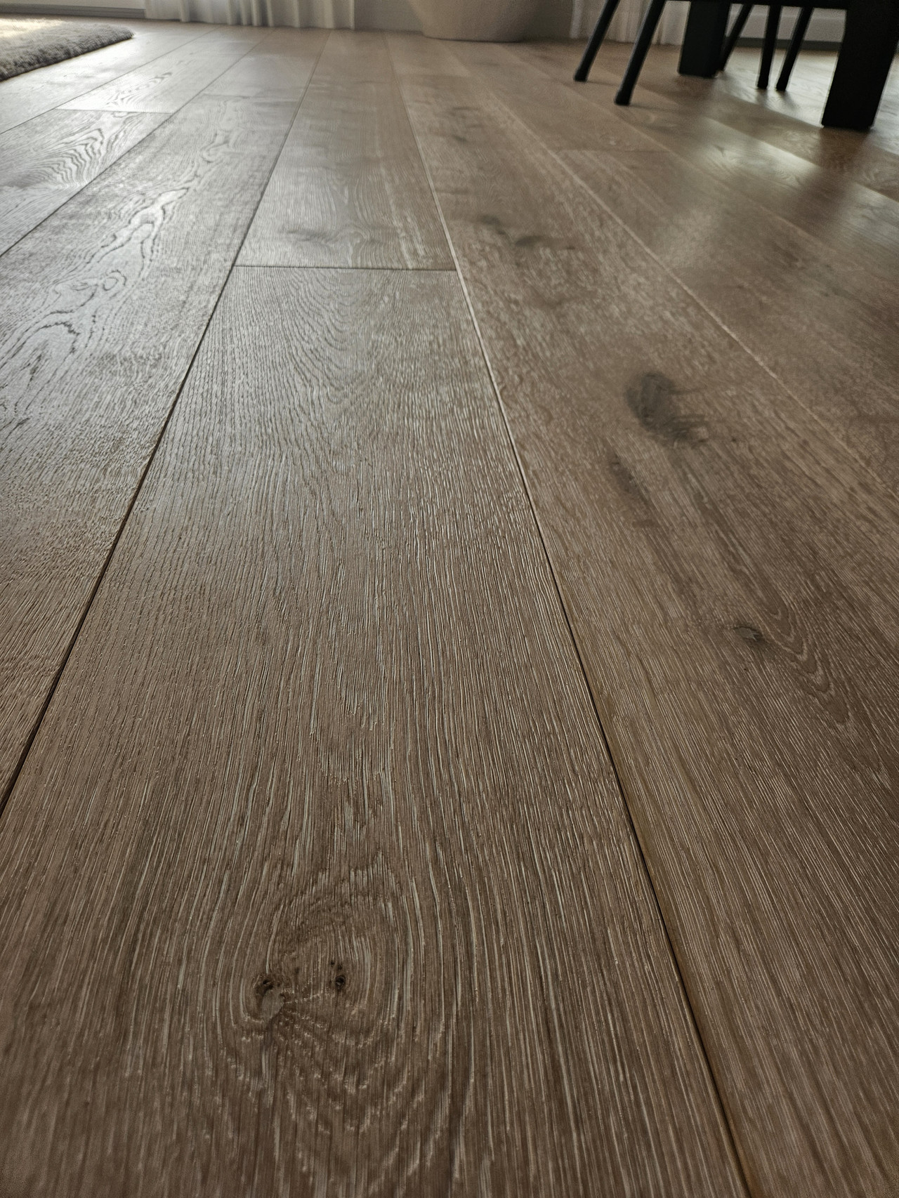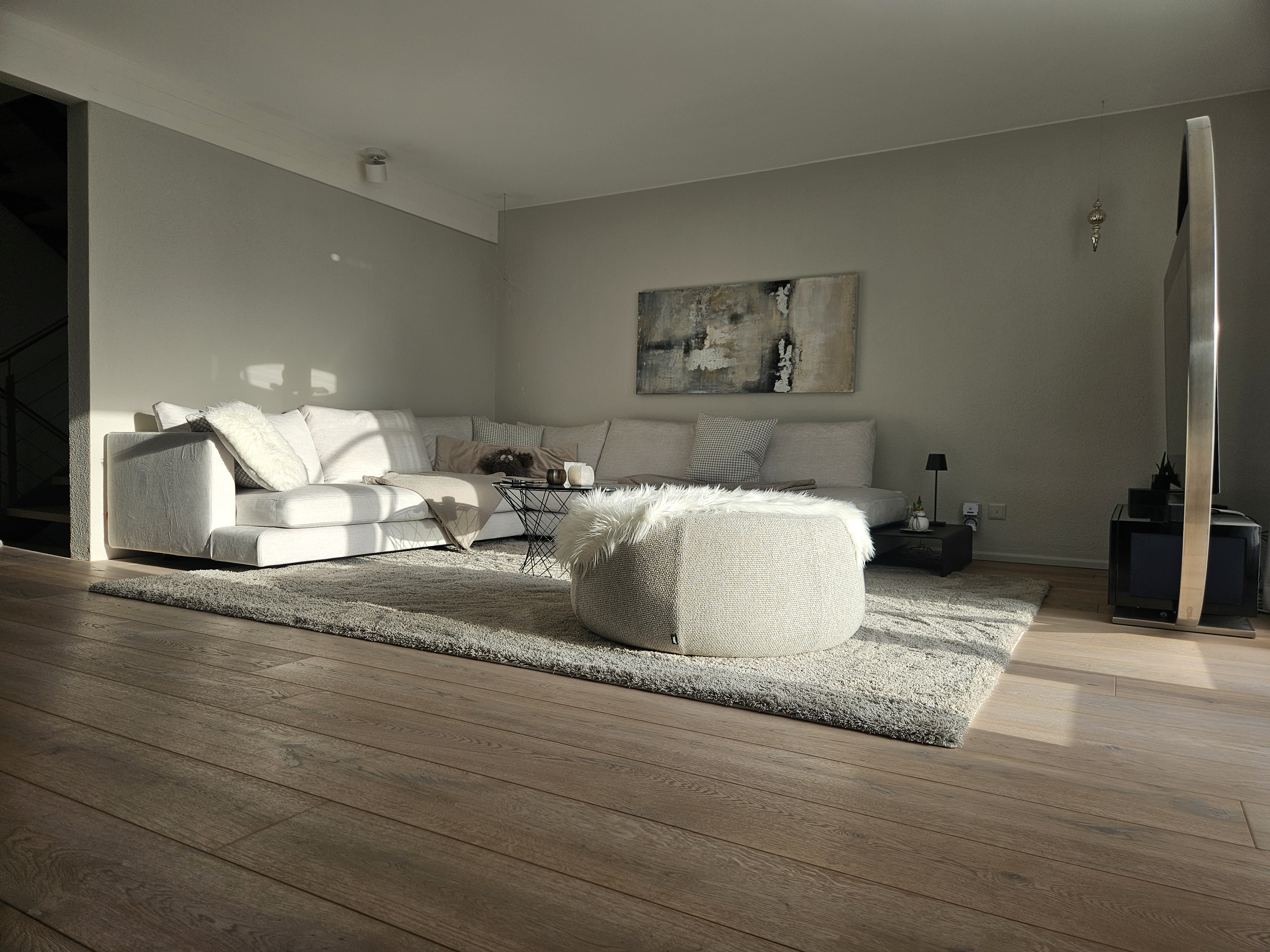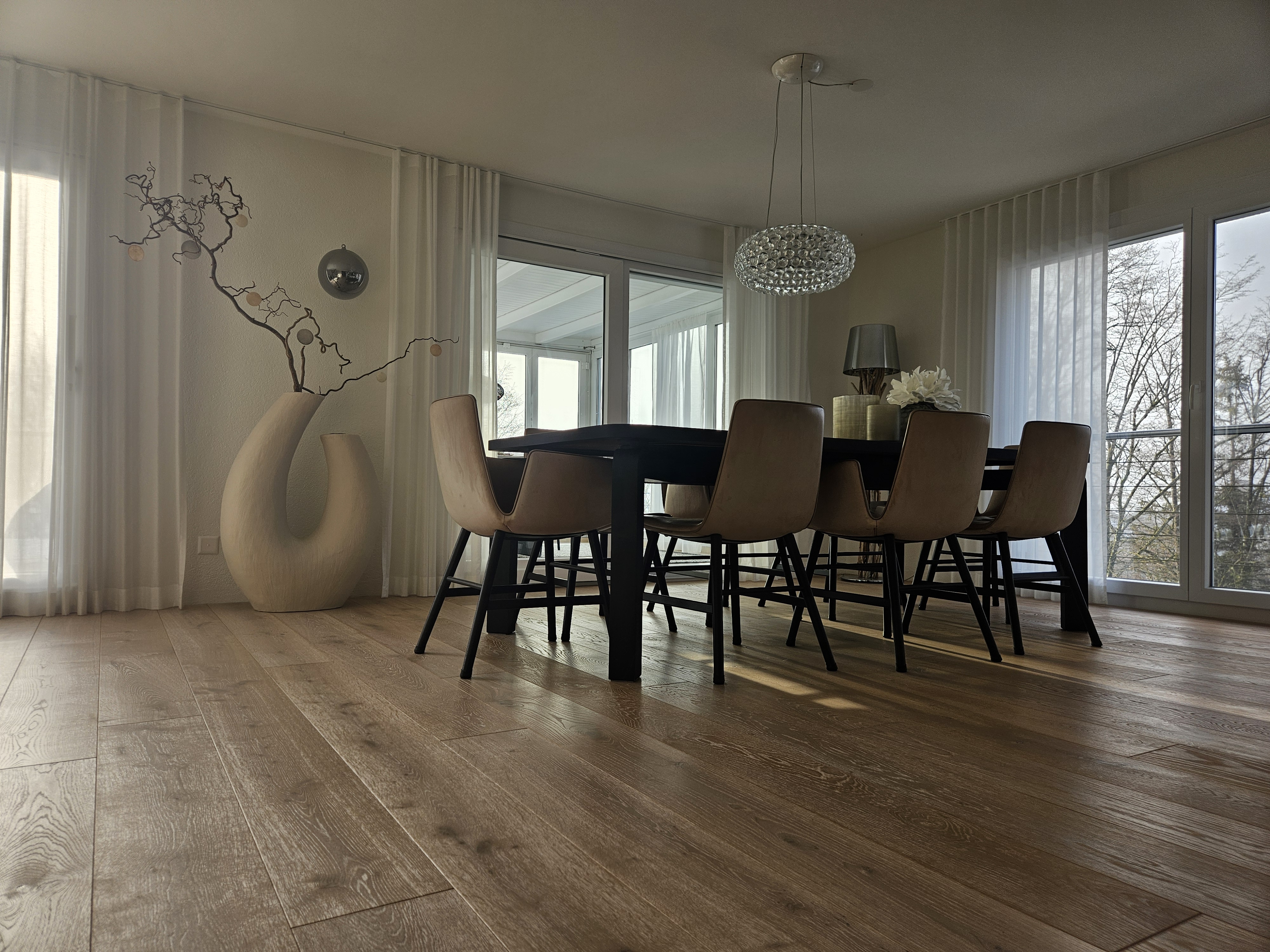 Das Einfamilienhaus in Hägendorf wurde Renoviert. Es wurde ein Plattenbelag abgespitzt und ein neuer Parkettboden eingebaut. Auf zwei Treppenläufen haben wir Massivholztritte und Podeste passend zum Parkett ersetzt. Der gebürstete und weissgeölte Parkett ist fugenlos eingebaut und verleiht diesem Zuhause ein Ambiente, dass zum verweilen einlädt. Als Wandabschluss wurde nicht wie gewöhnlich mit Fussleisten gearbeitet, sonder mit einer feinen Dichtstoffuge, passend in der Farbe zum Bodenbelag abgeschlossen.