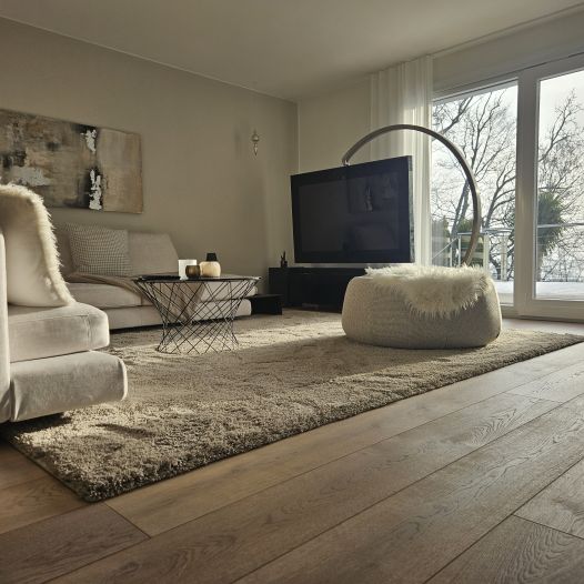 160 m2 - MEWI-Schlossdiele Eiche struckturiert, weiss geölt, Schweizer Fase