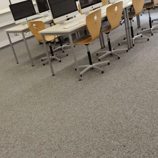 Im neuen Thalacker Schulhaus sorgt der strapazierfähige Kugelgarnteppich von Fabromont für moderne Optik, Komfort und einfache Pflege.